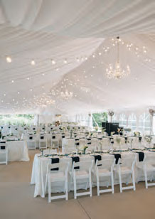 Step inside a Grimes Events tent, and you’ll understand the difference. Romantic sailcloth tents sway in the evening breeze as poles wrapped in sheer fabric dance with string lighting.